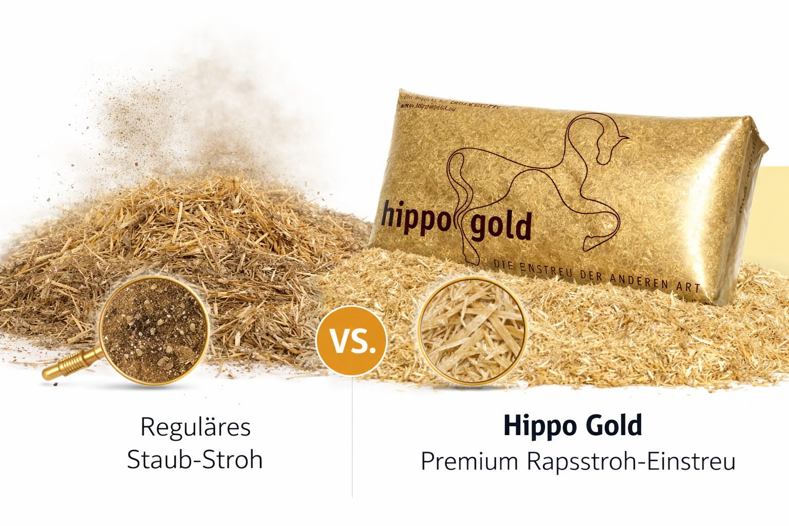 Wer seinem Pferd ein sauberes, staubfreies Zuhause bieten möchte, trifft mit Hippo Gold die richtige Entscheidung. Unsere hochwertige Einstreu auf Strohbasis wurde speziell für moderne Pferdehaltung entwickelt – mit Fokus auf Atemwegsgesundheit, Effizienz und Nachhaltigkeit.